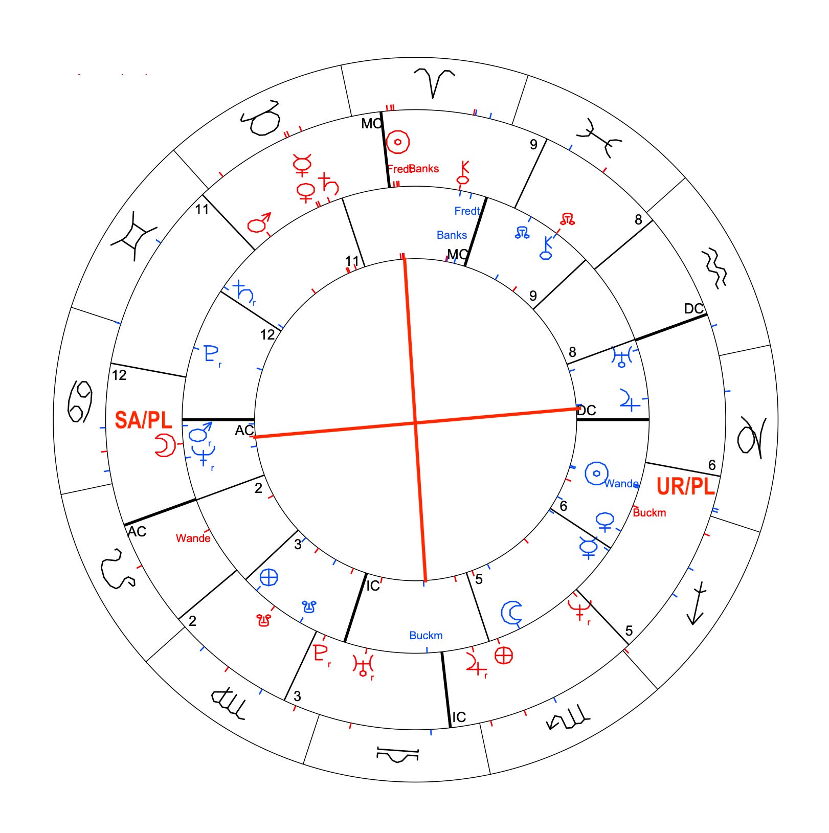 square Pluto, with transit of Pluto to MP BuckMaster: classic mid-life crisis stuff, but with a twist; ready for the “big move”.