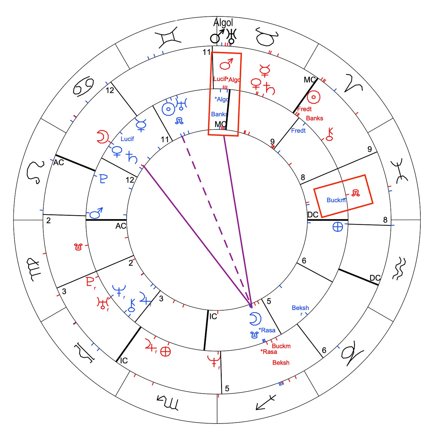 But, as we can see, Warsh’s Sun, Moon and Mars are in the thick of a tightly focused, great big “spooky thing”. With that rather satanic Mars MP Lucifer on “Medusa’s star” Algol, quincunx his MP BuckMaster on Rasalhague, “The Head of the Snake”, it is tempting to read a certain je ne sais quoi into his ultimate loyalty.